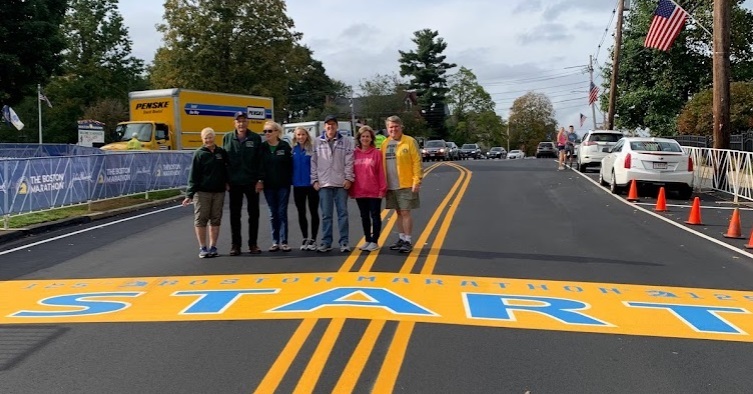 Friends of Hopkinton at Startline with Our Runner Morgan Woodman